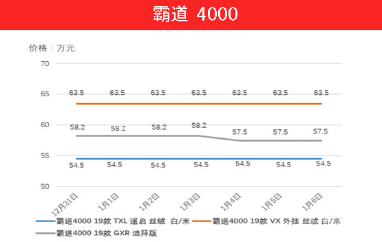 上周的霸道4000表现的还算平稳,经销商也知道4000的价格区间面临着太多的强敌,19款GXR象征性的降了7000元,且为销量并不算主打的迪拜版车型。