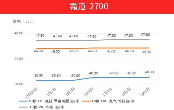降价不积极涨价倒是挺快,霸道2700说实话有些被神化了,上周霸道2700丐版车型上涨5000元,其他两款车型也有1000-2000元的涨幅。